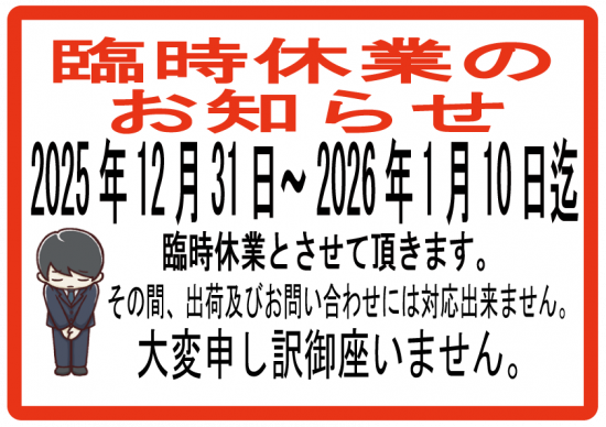 その前後を含む期間は商品の出荷やお問い合わせには対応出来ません。